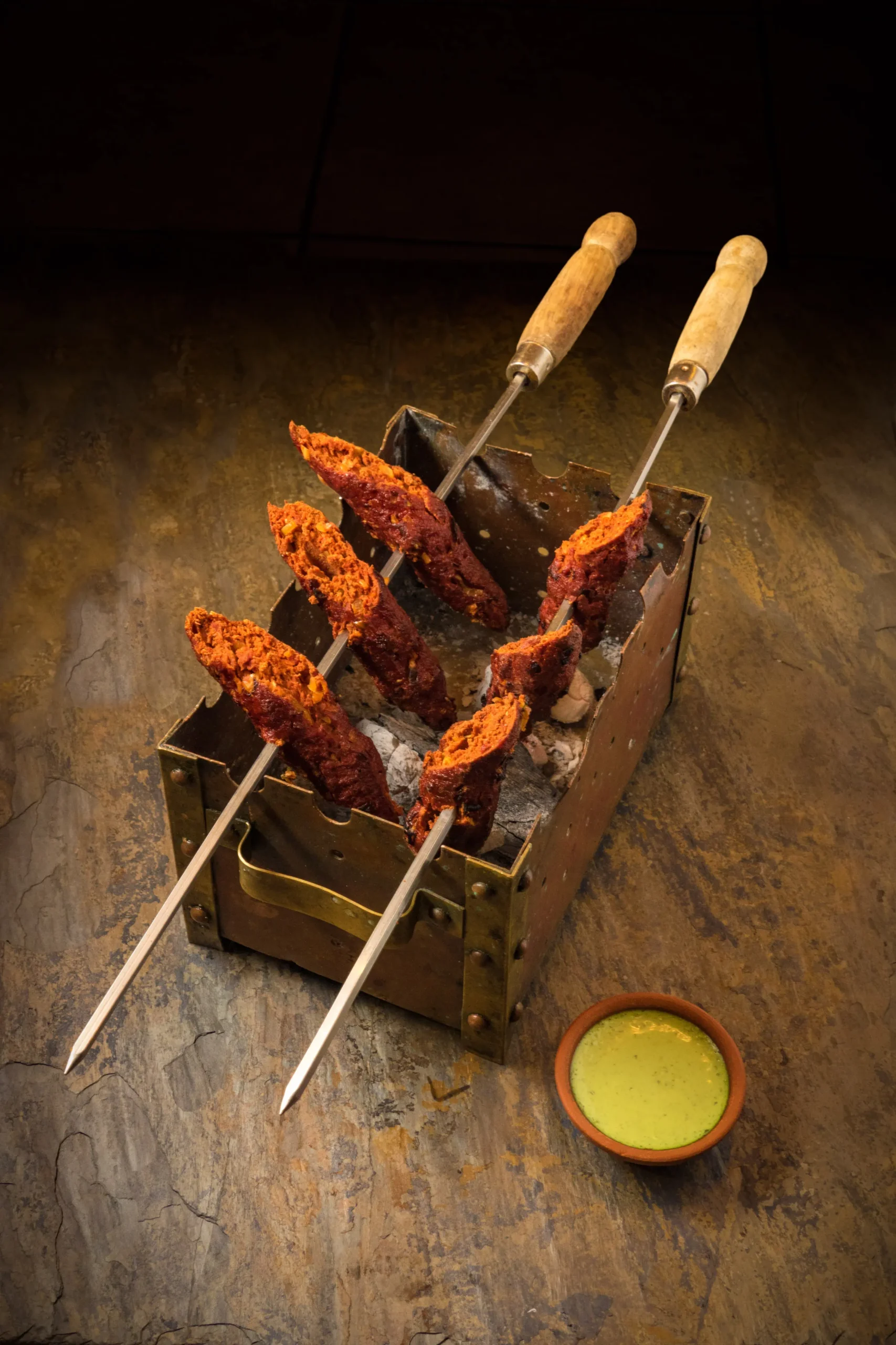 An assortment of Chicken, Fish, Shrimp & Mutton kebabs